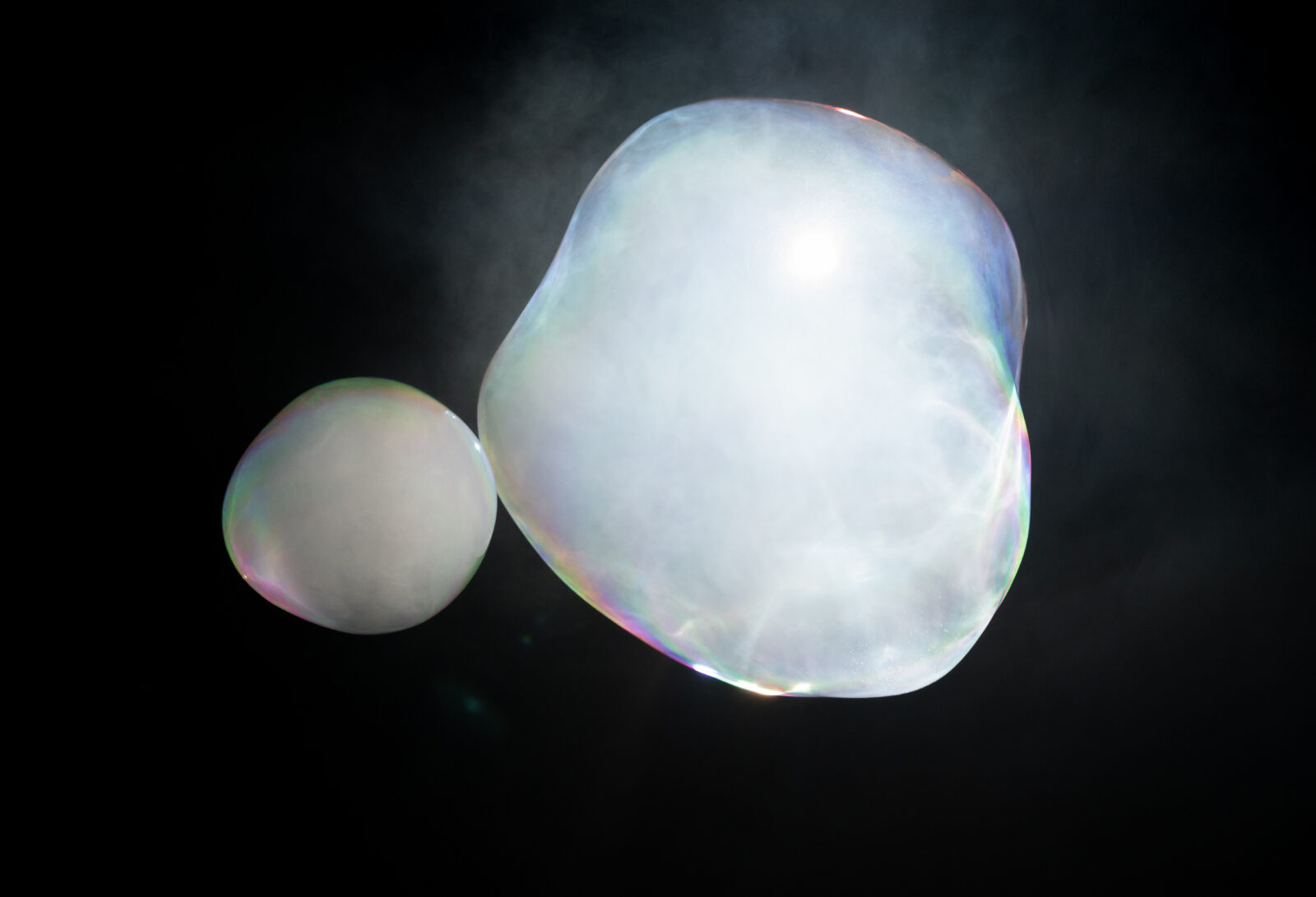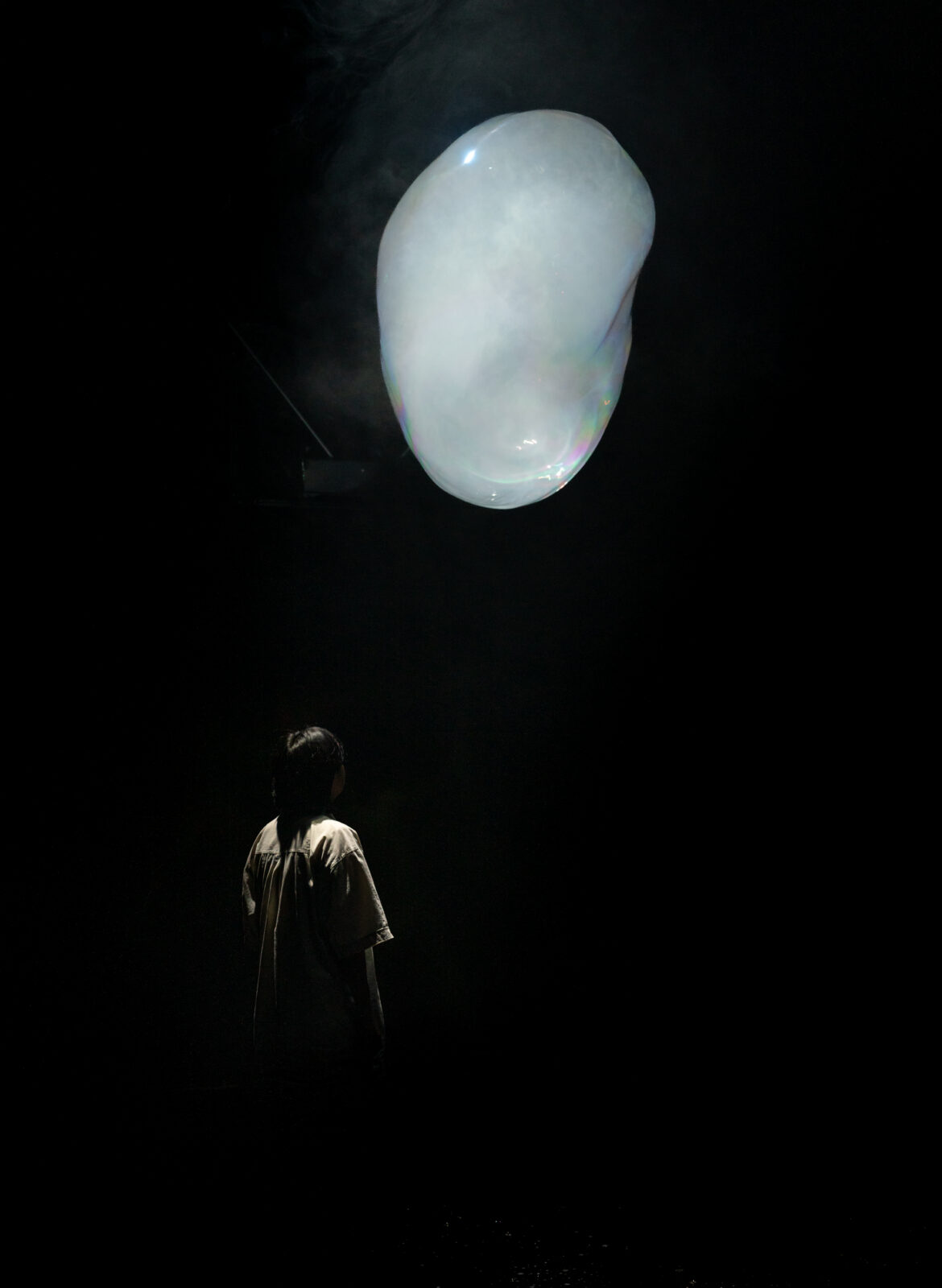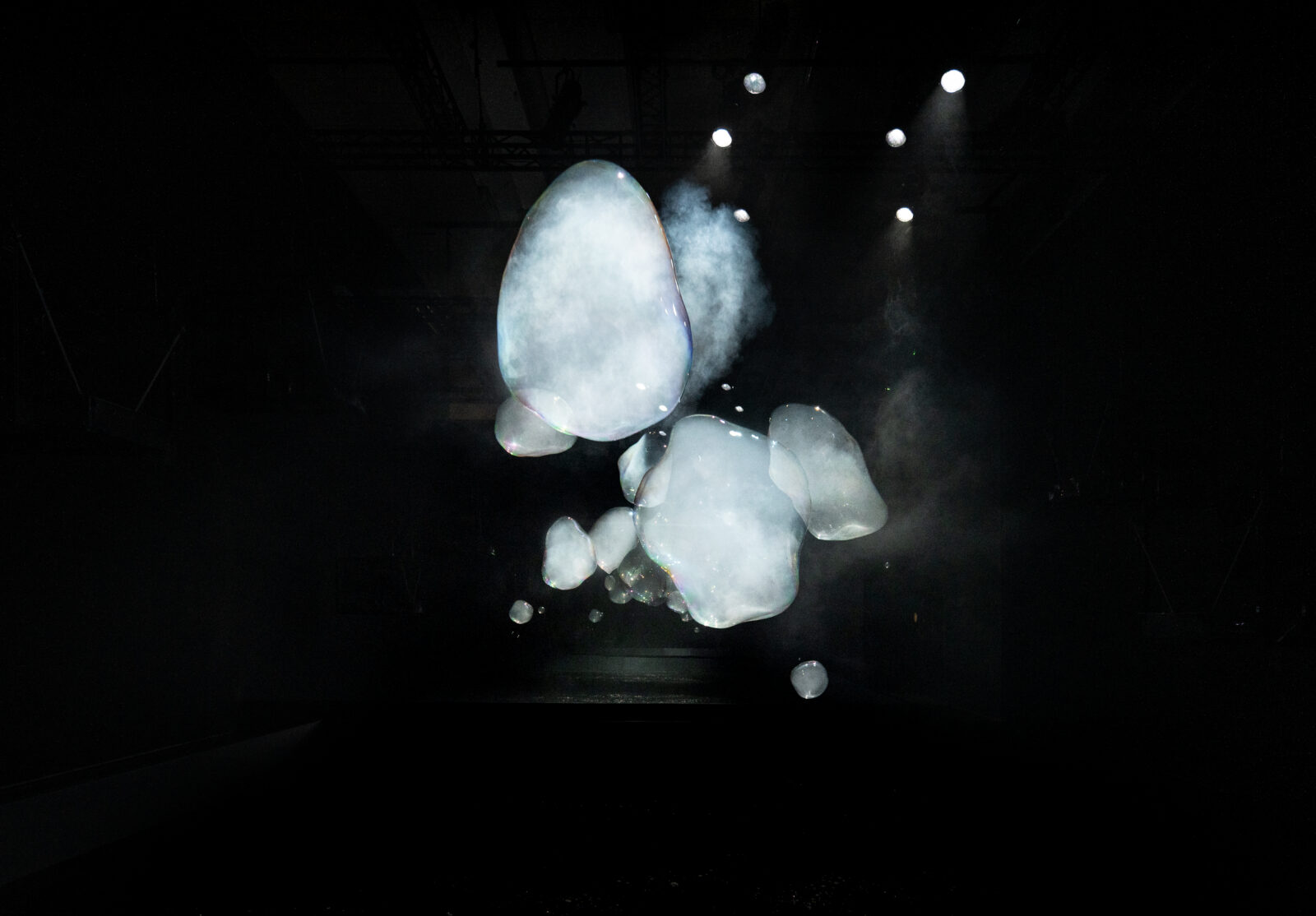 I Beyond the Horizon, 2024, skaber den britisk-japanske kunstnerduo A.A.Murakami (Azusa Murakami og Alexander Groves) et sanseligt landskab, hvor teknologi giver form til det flygtige. I et mørklagt rum opstår og opløses boblelignende skyer i et roligt, næsten åndende tempo – oplyst bagfra, svævende gennem rummet, for så stille at forsvinde igen.