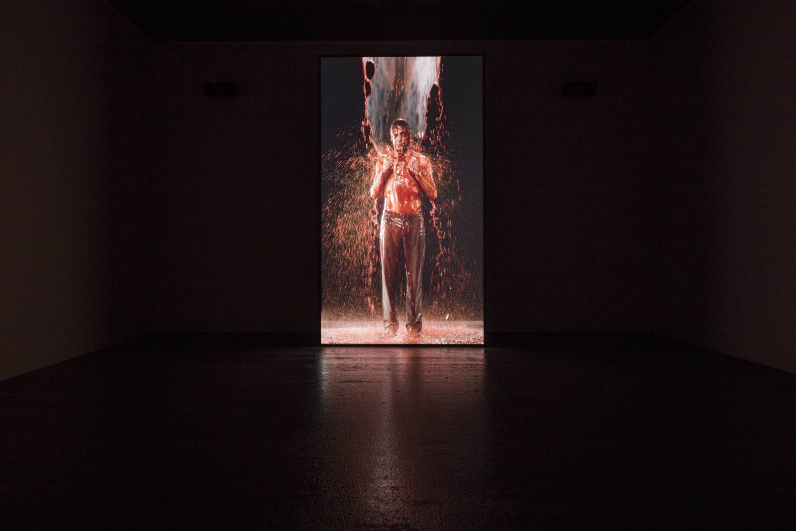 Viola writes about Inverted Birth, that it “depicts five stages of awakening through a series of violent transformations. The fluids represent the essence of human life: earth, blood, milk, water, and air, and the life cycle from birth to death, here inverted into a transformation from darkness to light.”