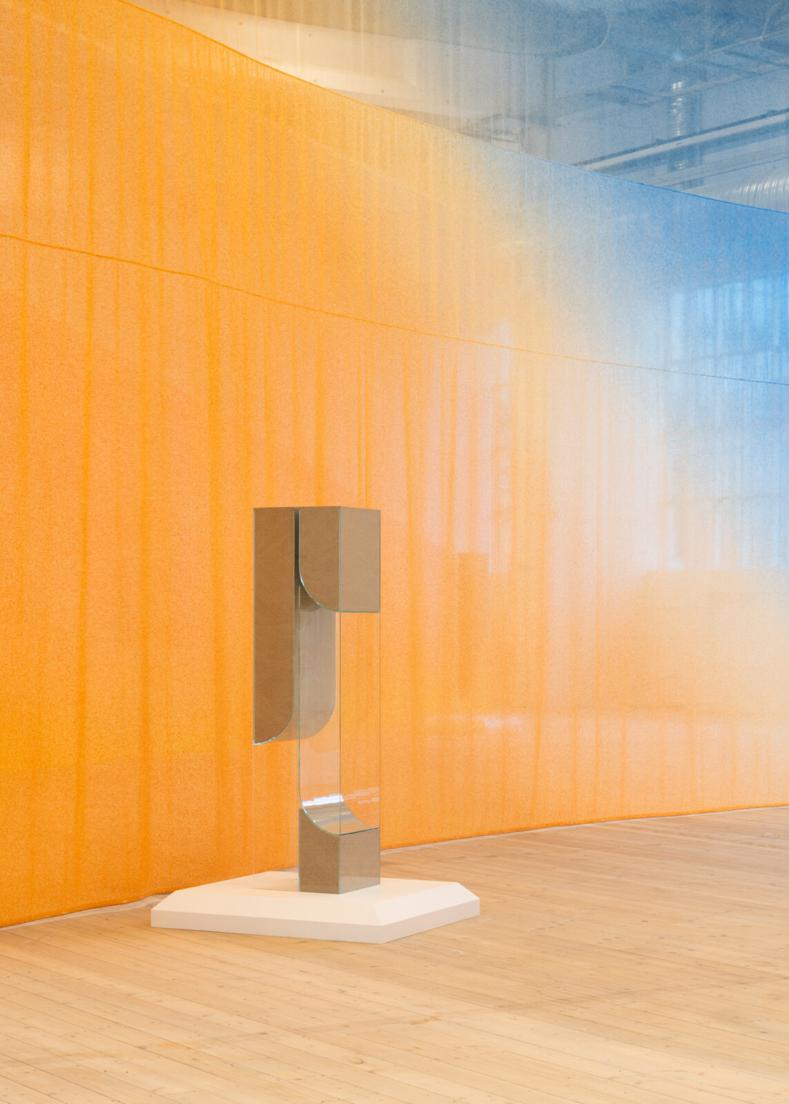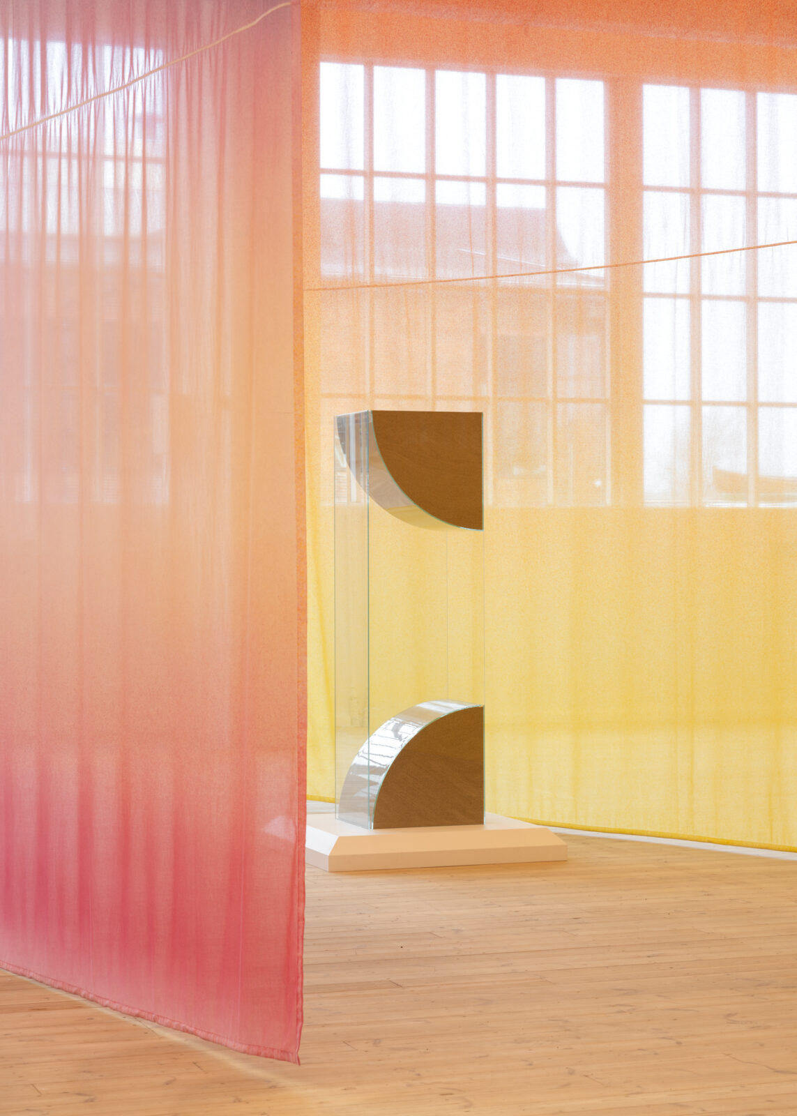 The exhibition spans CC’s two largest halls, covering 1600 m² as a fluid movement created by Kiwanga’s elegant play with materials and their secrets. With a penchant for experiences that are overwhelming but not static, she uses fluidity as a sculptural principle. Her work is permeated by an idea of continuous recreation and adaptability.