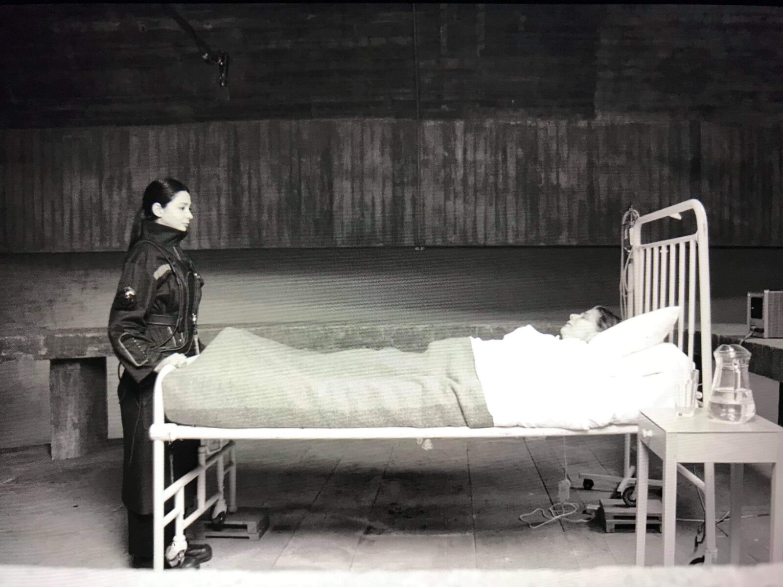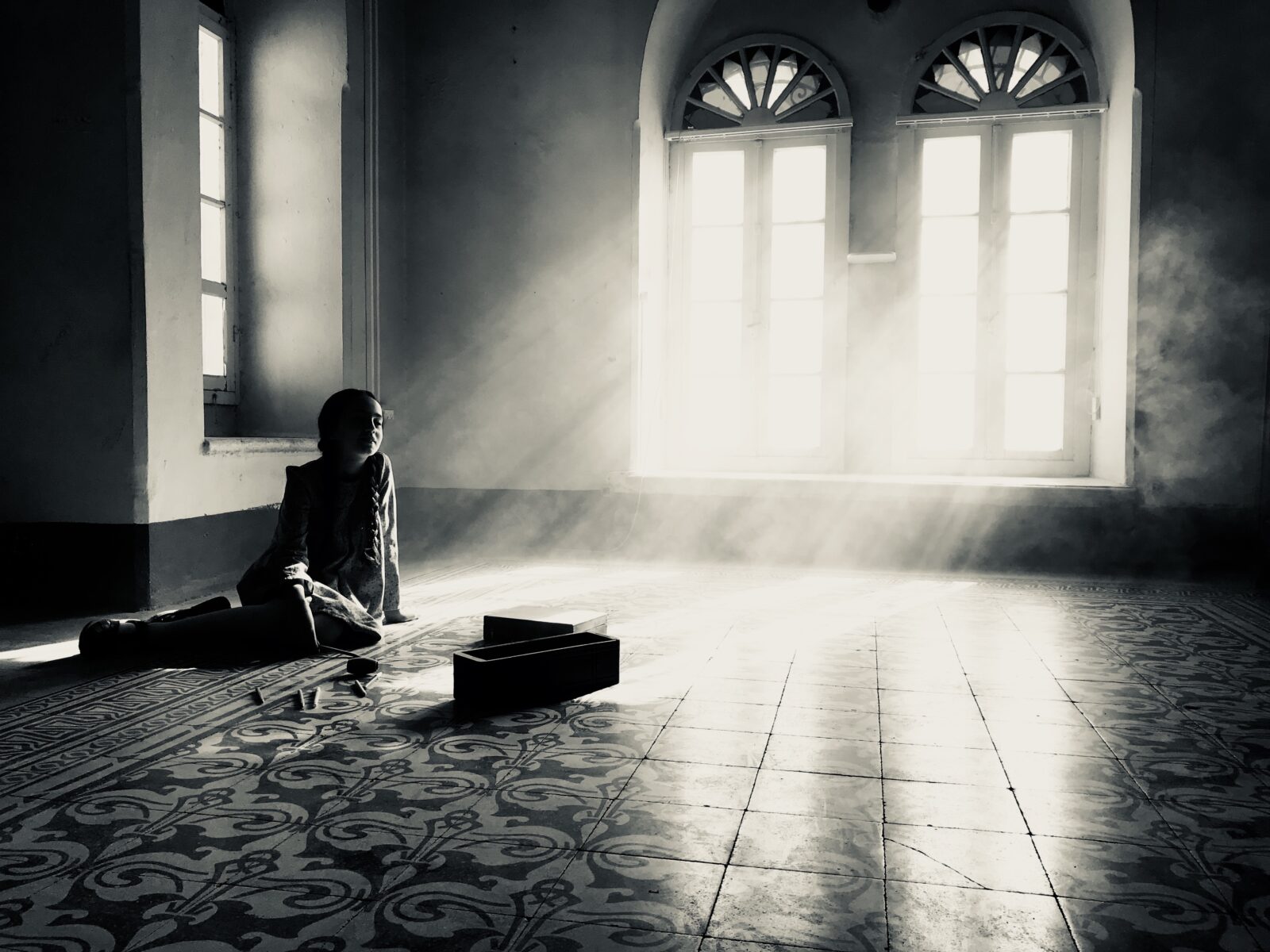 In Vitro takes place in Bethlehem in a not-too-distant future. A major disaster has forced the city dwellers to take refuge in subterranean bunkers. Inside one of these bunkers, we meet the work’s two protagonists, the young Alia and her ageing teacher, Dunia.