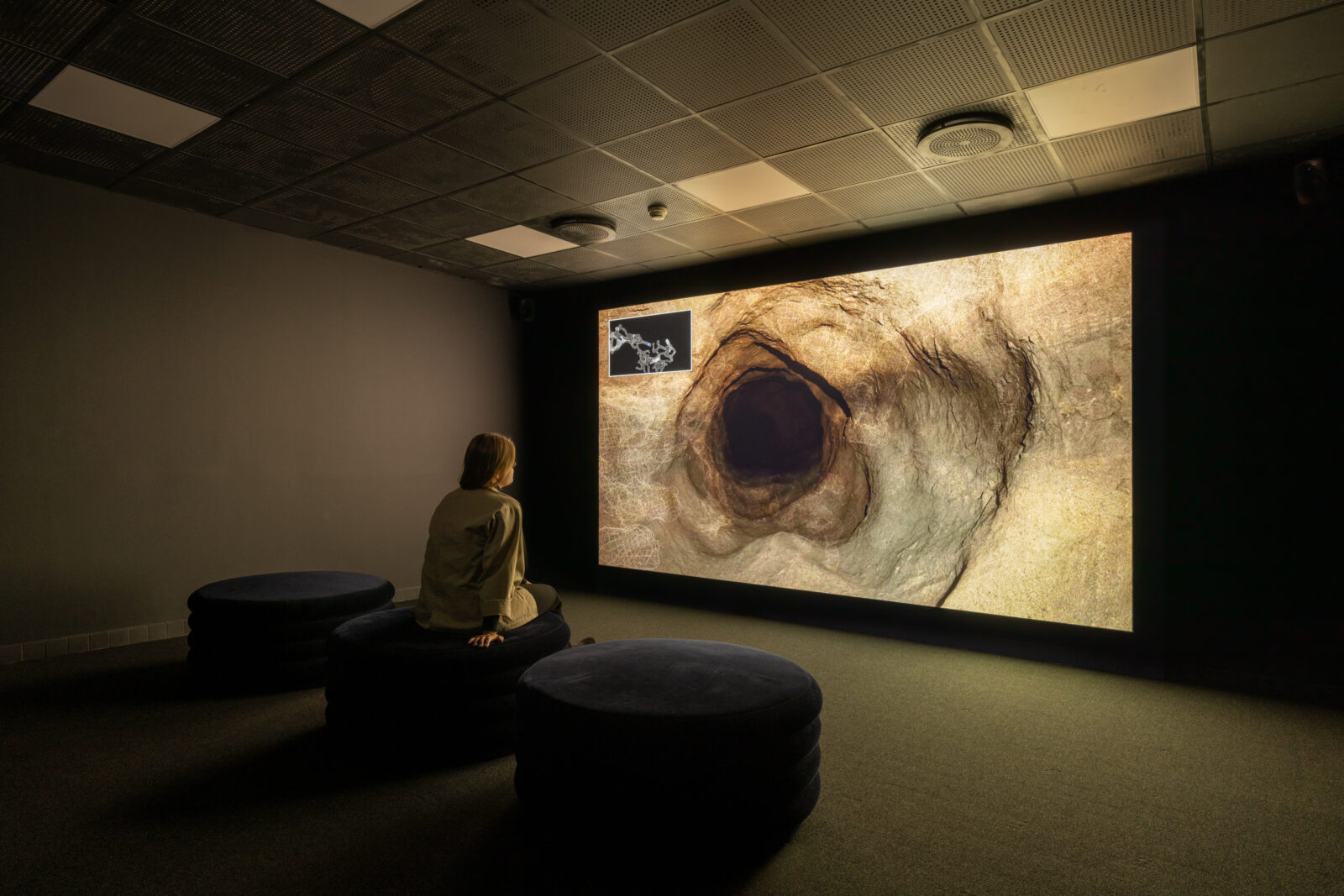 Since 2021, the artists have engaged in dialogue with researchers at the exhibition’s four scientific research partners: DARK at the Niels Bohr Institute, University of Copenhagen; Arts at CERN in Geneva; the Interacting Minds Centre at Aarhus University; and ModLab (Digital Humanities Laboratory) at the University of California, Davis. This meeting of the minds has produced artworks with perspectives ranging across fields like astrophysics and quantum physics, brain and cognitive sciences, anthropology, and technology and performance studies.