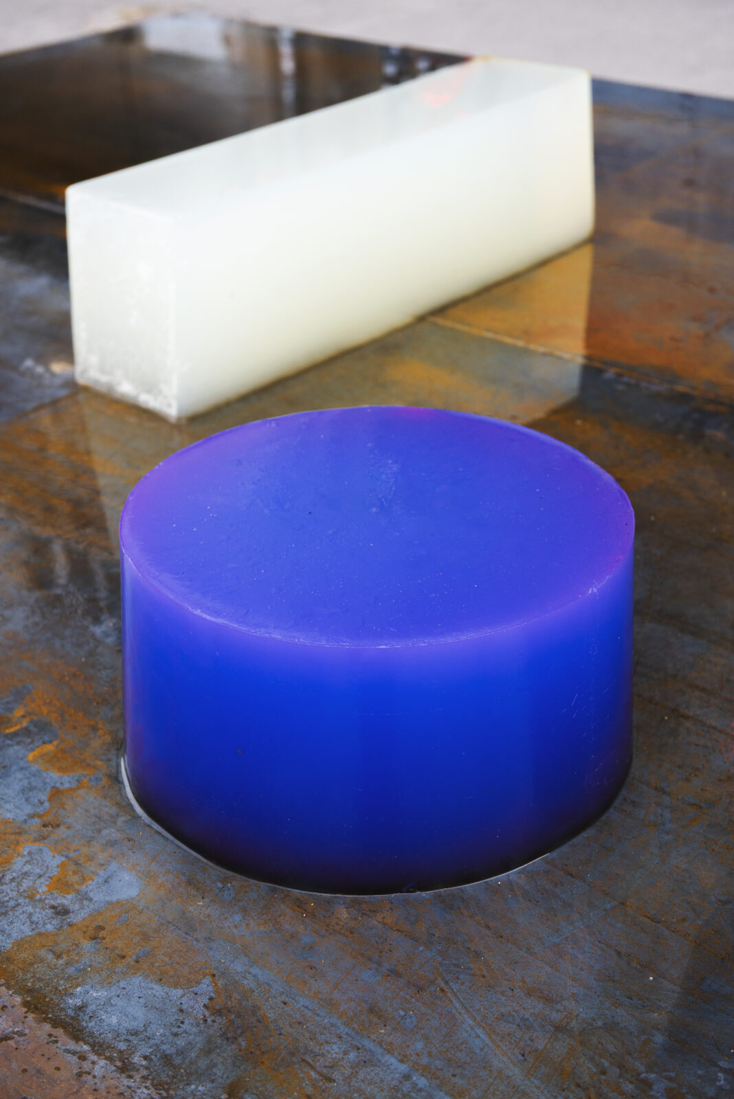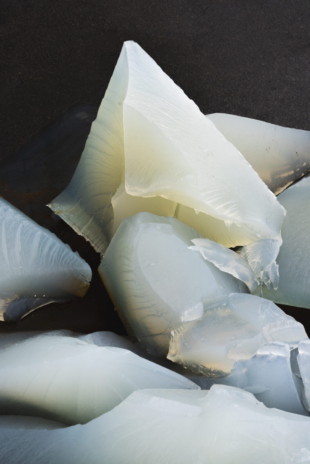 Geléskulpturerne er støbt på stedet og alle i forskellige størrelser. Skulpturernes særlige materialitet opstår, når et geléteringsprodukt iblandes opvarmet vand, der efter afkøling efterlader vandet ”stivnet” i sin form. Som resultat opstår en organisk gelé, der kan virke dragende med sin sanselige bevægelighed – næsten som en levende og mystisk krop.