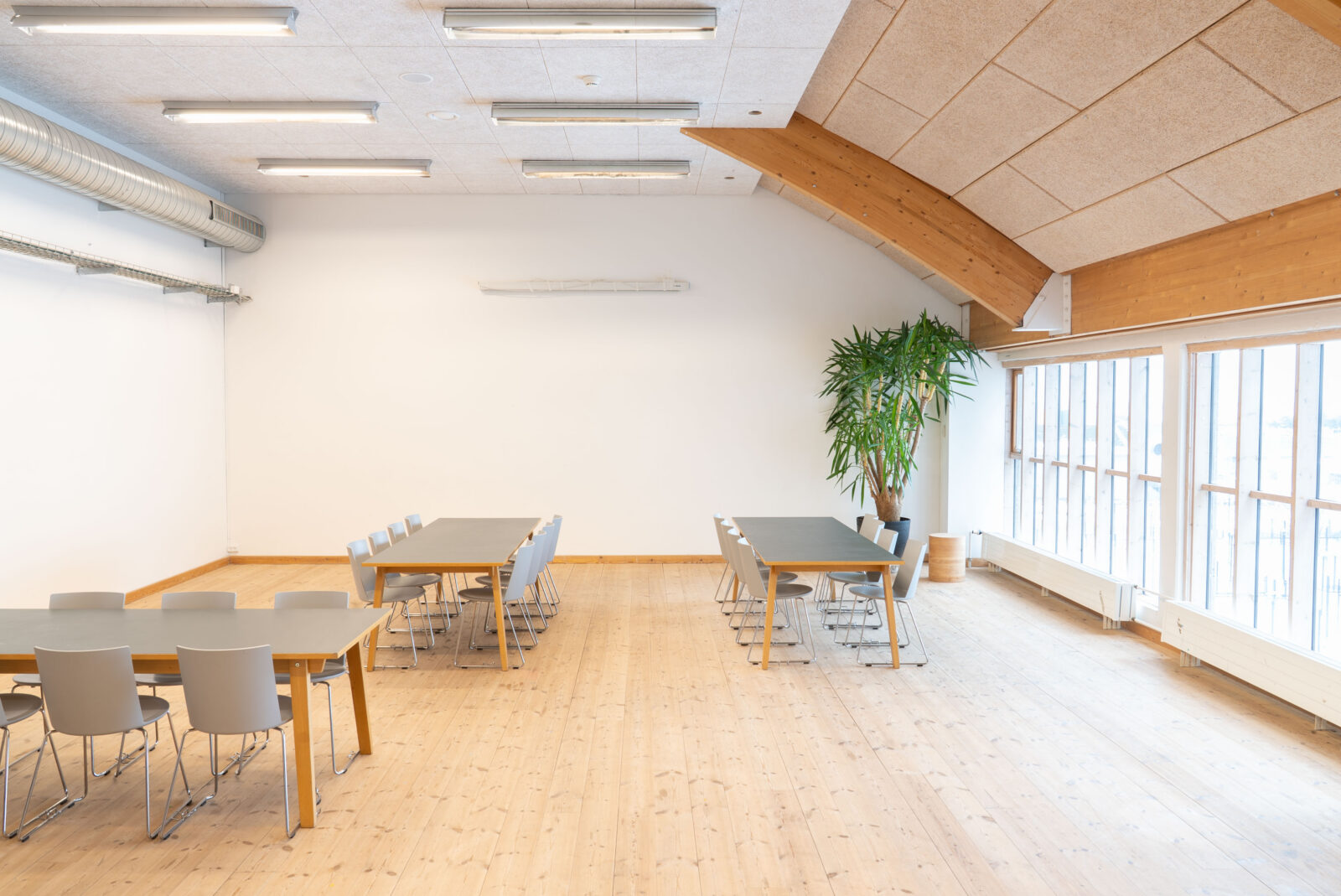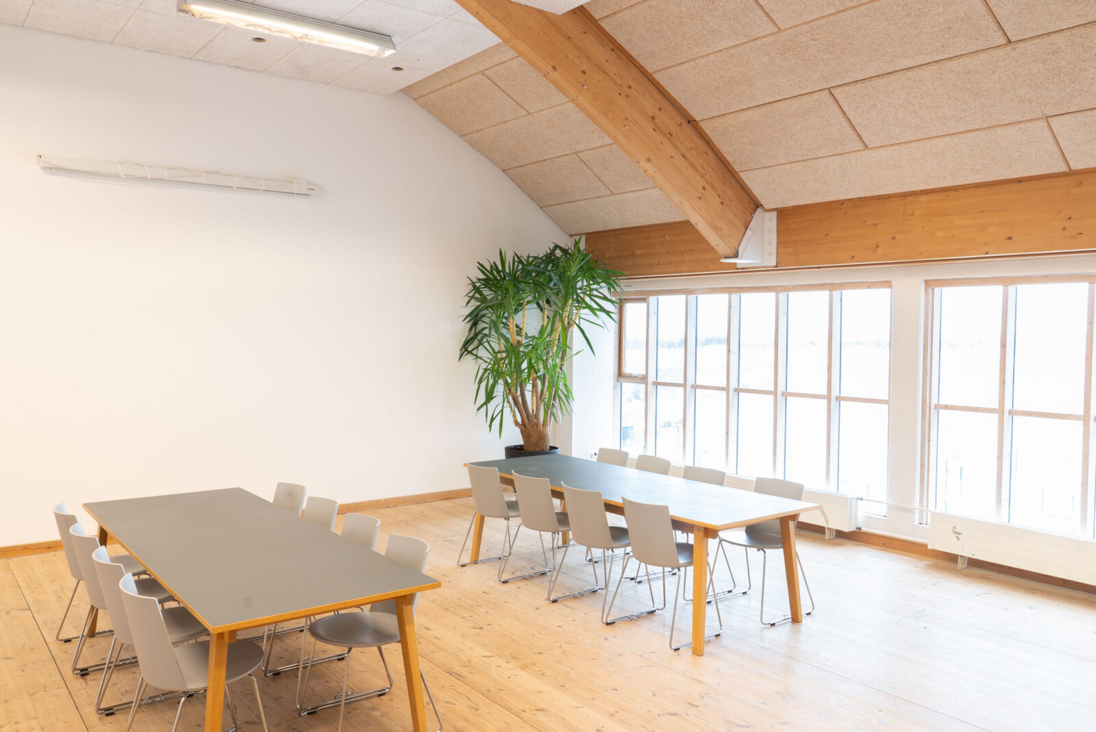 Når I lejer lokalet Penthouse får I en fantastisk udsigt over Refshaleøens urbane råhed og et vue over området hvor CopenHell afholdes årligt. Lokalet er placeret midt i udstillingerne, så tættere på kunsten kan I ikke komme. I Penthouse er mulighed for både biografopsætning eller flere borde som er idealt til præsentationen og workshops.