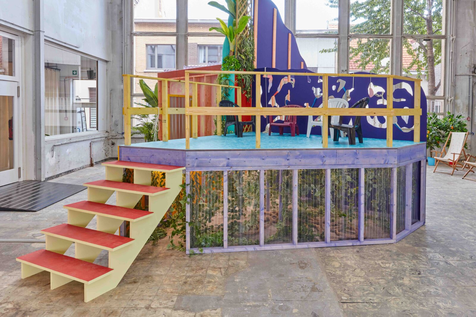 Det var netop sådan en rejse den venezuelanske kunstner Sol Calero tog os med på, da hendes farvestrålende caribiske univers blev foldet ud for fuld kraft i Copenhagen Contemporarys haller under titlen El barco de barro (The Clay Ship). Her skabte Calero et levende fællesskab med pavilloner, plastikstole og møbler i organiske former, som et billede på forestillingen om Latinamerika. Udstillingen er bygget op som et stort lerværksted, hvor spørgsmål om identitet, indvandring og kulturmøder kunne udforskes, alt imens publikum kunne bevæge sig frit rundt i installationen. I arbejdet med leret inviterede Sol Calero gæsterne til at tage del i skabelsen af udstillingen og til at give deres egen fortælling videre. Udstillingen udviklede sig gradvist, og i løbet af udstillingsperioden blev de besøgendes kreationer sat op overalt i udstillingen og fyldte reoler, trapper, hylder borde og andre flader overalt i El barco de barro (The Clay Ship).